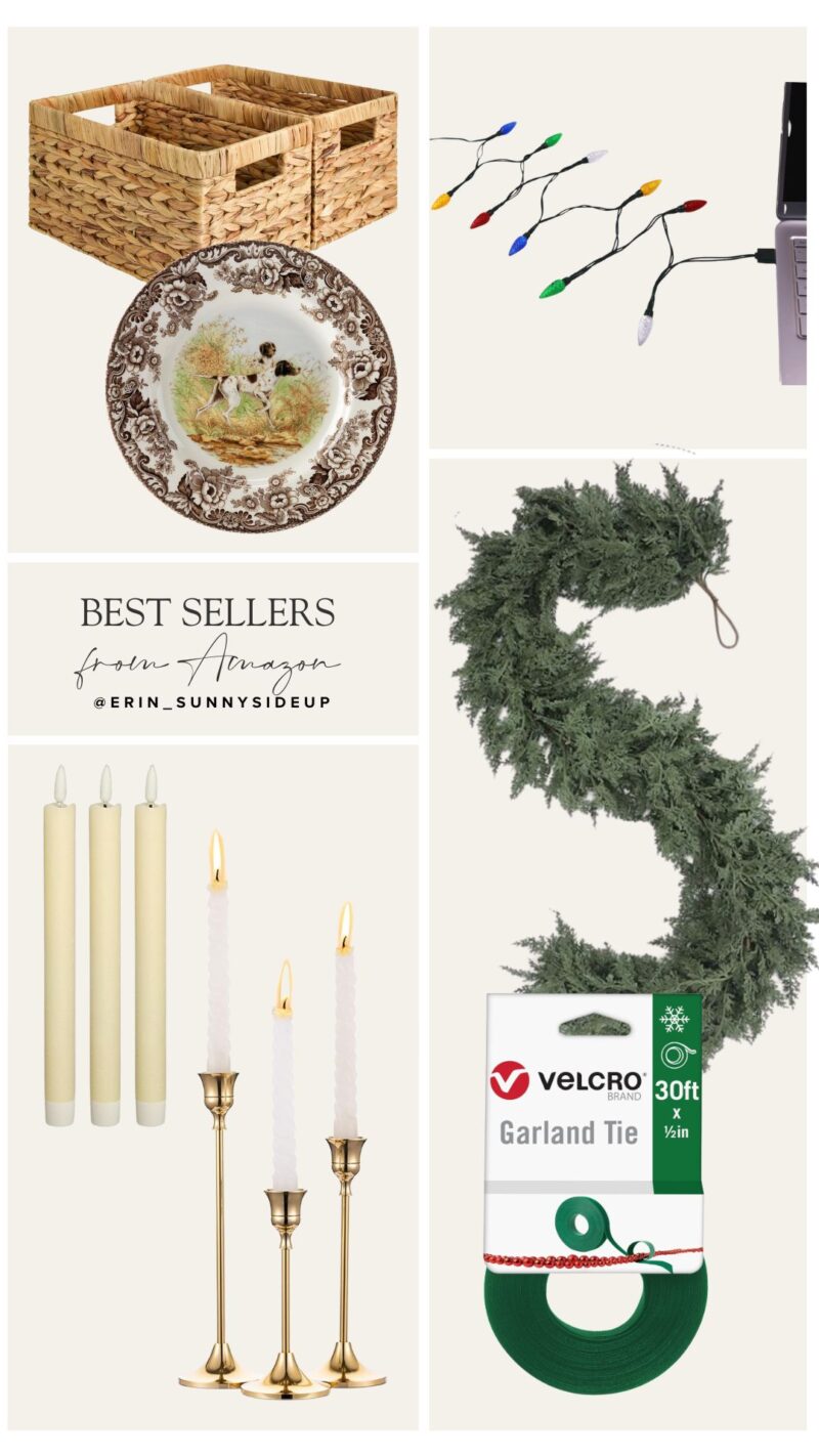 {Candle Stick Holder,  Garland Ties, Flameless Tapers, Christmas Light Charger, Baskets, Dog Plate, Faux Garland}